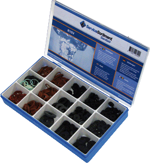 Beschrijving De Beer assortimentsdoos sanit. afdichtmat., behuizing kunststof, fiber ringen, O-ringen, 15 vakken