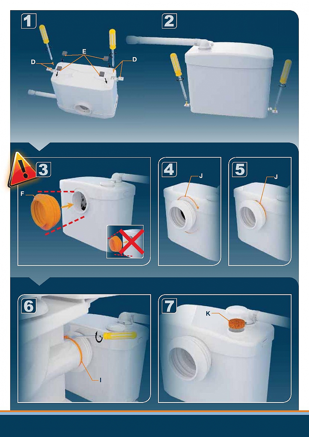 De unit wordt direct achter het toilet geplaatst en aangesloten op de afvoerleiding. Voor montage heb je meestal een waterpas, een schroevendraaier, een zaagje voor PVC en een slangklem nodig. Zorg dat er geen doekjes of harde voorwerpen worden doorgespoeld, dan blijft het systeem betrouwbaar werken.