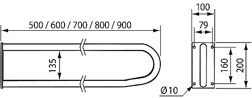 De LinidoSolutions vaste toiletbeugel is beschikbaar in 5 verschillende lengtes (500 mm, 600 mm, 700 mm, 800 mm en 900 mm). Een beugellengte die overeenkomt met de minimale lengte van het toilet + 200 mm (lengte van de schoenen van de gebruiker) wordt aanbevolen.