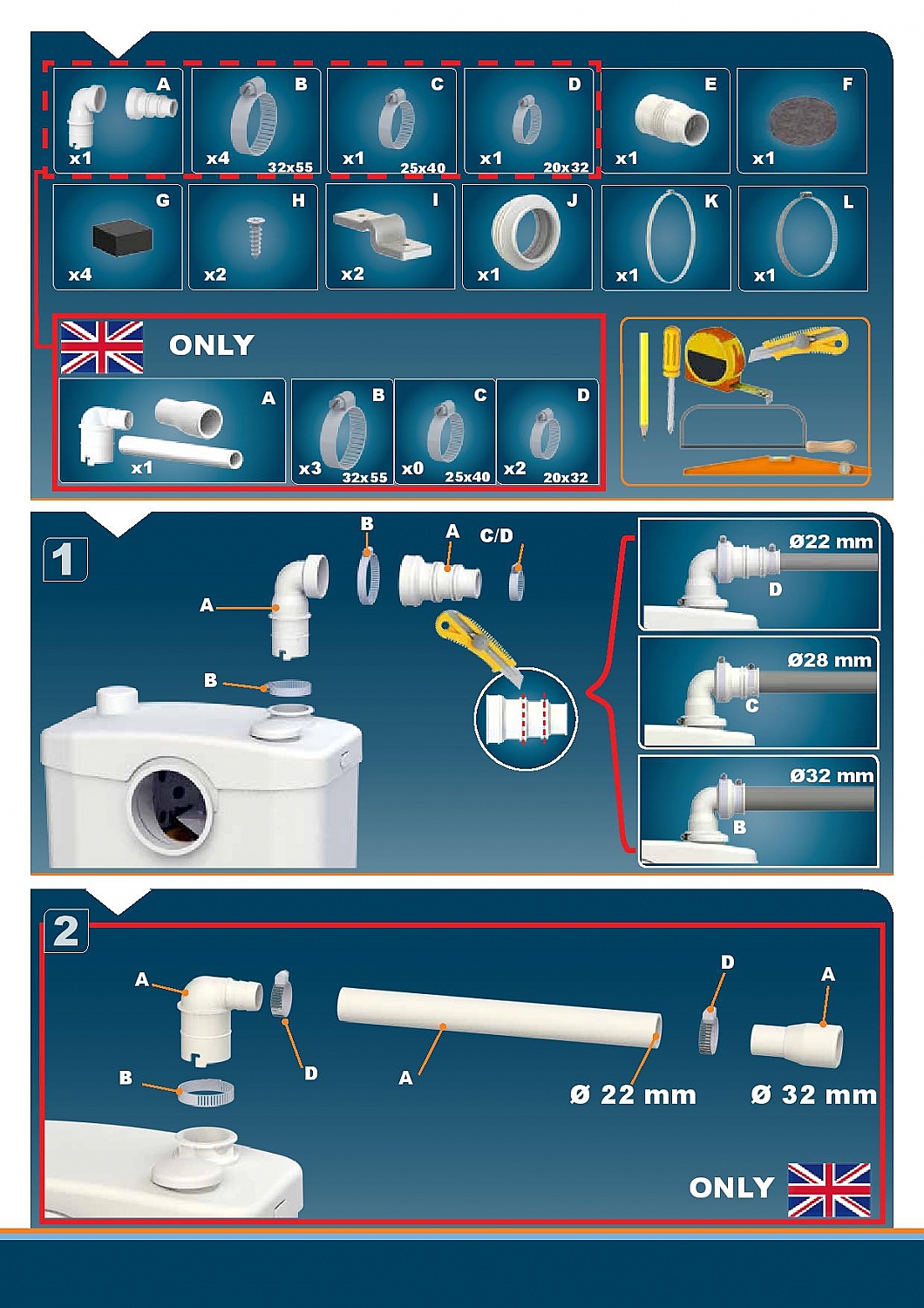 Bekijk hier alle Sanibroyeurs.| Opstelling achter toiletpot | J |