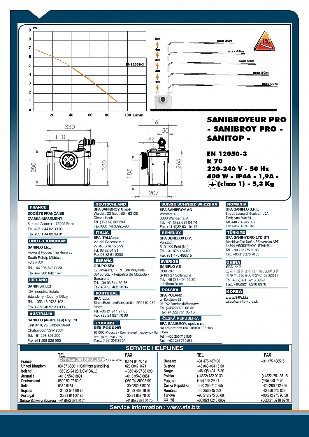 De Sanipro is een vermaal- en pompsysteem met 4 aansluitingen voor afvoer van fecaliënhoudend afvalwater van een badkamer bestaande uit een wc, een fontein of wastafel, bidet en een douche. De compacte en geluidsarme Sanipro kan in een kleine ruimte toegepast worden. De montage van de Sanipro is simpel, snel en gemakkelijk achter iedere willekeurige wc mogelijk. Hiermee kun je dus overal in huis een badkamer creëren.