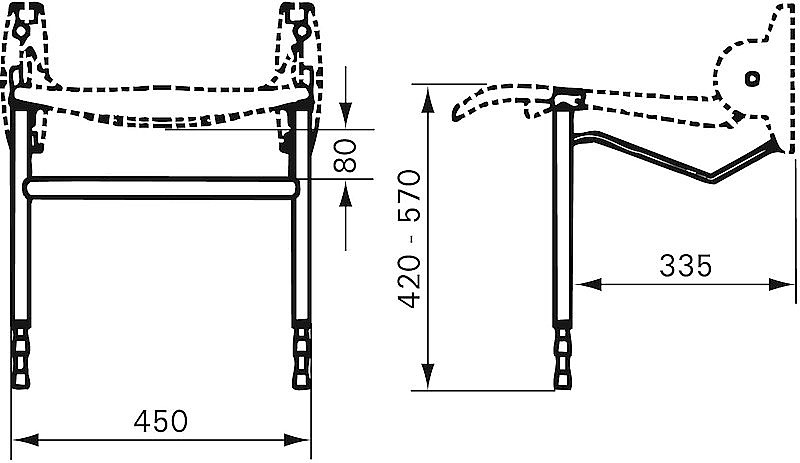 - Traploos in hoogte instelbaar voor een zithoogte tussen 420 en 570 mm