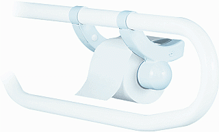 De klemmen die om de beugel gaan, zijn minimaal in dikte waardoor zij het gebruik van de toilet- of wandbeugel niet hinderen. Ook deze toiletrolhouder kan over de gehele lengte van de toiletbeugel geplaatst worden.
