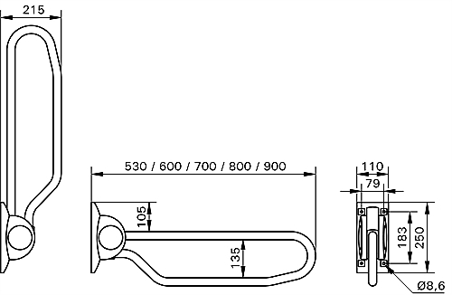 Door de kenmerkende dubbele buis kan de beugel in opgeklapte stand veilig worden vastgehouden op een gangbare reikafstand zonder vingers af te klemmen of aan de muur te schaven.