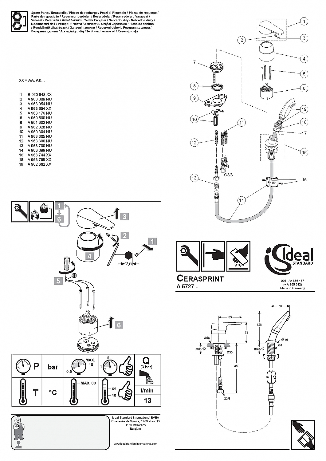 | Opmerking | Aansl. Kappers handdouche |