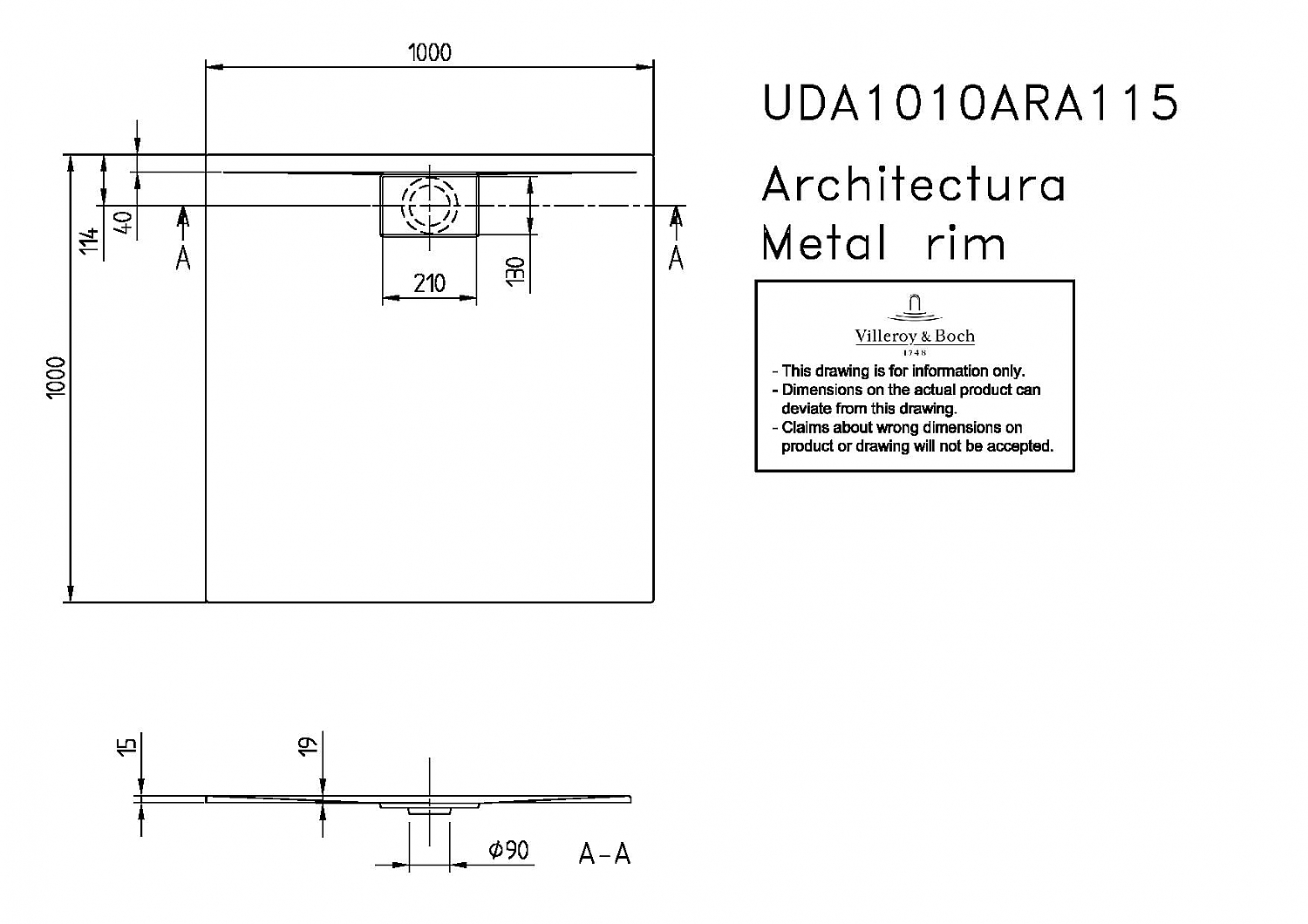 - Bij aankoop van een Architectura MetalRim douchebak in de kleur StarWhite (96), adviseren wij om de chroom (UCWAS023161) of de edelmatchroom (UCWAS023169) afvoerafdekplaat bij te bestellen.