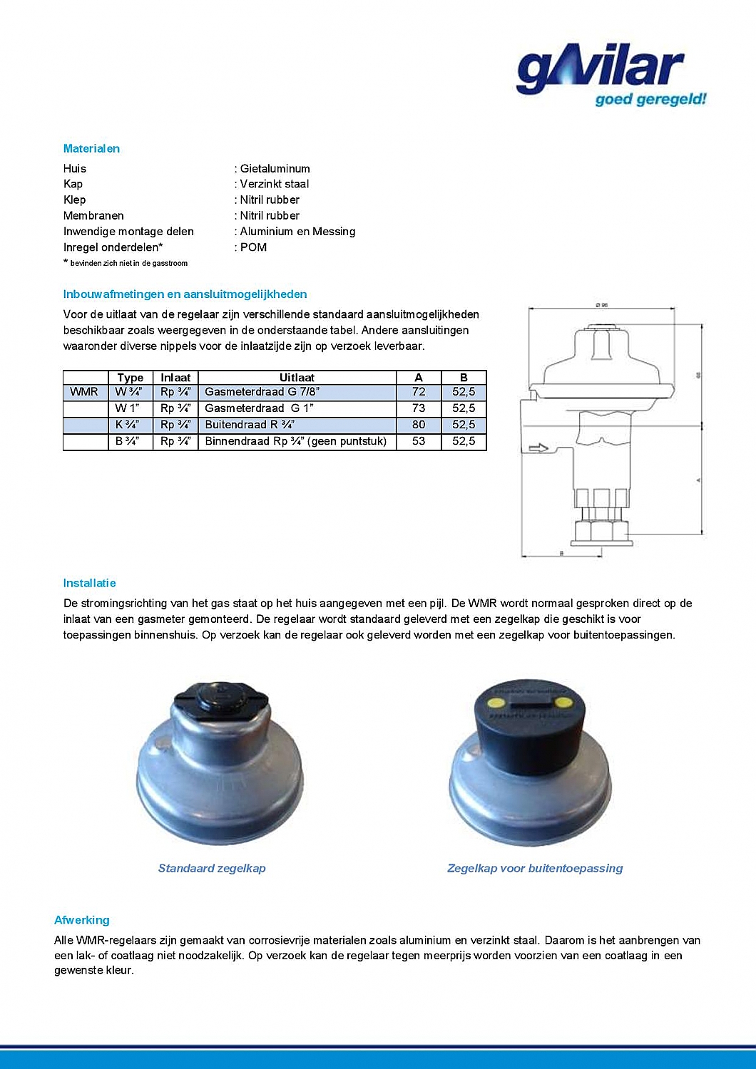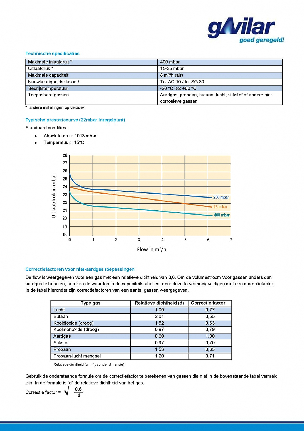 Met de Gavilar WMR10B gasdrukregelaar zorg je voor een stabiele en veilige gasdruk in je installatie. Deze regelaar is geschikt voor gebruik bij aardgas en propaan en helpt drukverschillen moeiteloos op te vangen. Zo voorkom je storingen en blijft je toestel betrouwbaar werken.