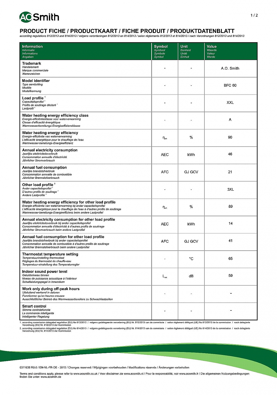 De BFC is een volledig gesloten condenserende hoog rendementboiler (109% o.w.). Deze boiler is vrijwel overal te plaatsen door de flexibiliteit in rookgasafvoersystemen. Het opwekkingsrendement voor de EPC-berekening is 96.6%. De BFC is dan ook goedgekeurd voor de Energie Investerings Aftrek (EIA).