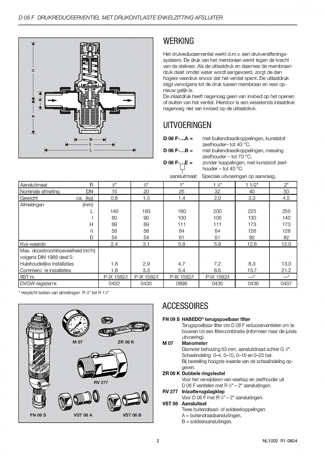 Drukreduceertoestellen van dit type beschermen huishoudelijke drinkwater installaties tegen drukstoten uit het leidingnet. Kunnen tevens gebruikt worden voor industriele of commerciele installaties. Door het installeren van een drukreduceertoestel voorkomt u schade van overdruk en bespaart u water. De uitgangsdruk is altijd constant ook als de inlaatdruk sterk varieert. Het reduceren van de druk zorgt tevens voor het voorkomen van stromingsgeluiden in uw installaties.