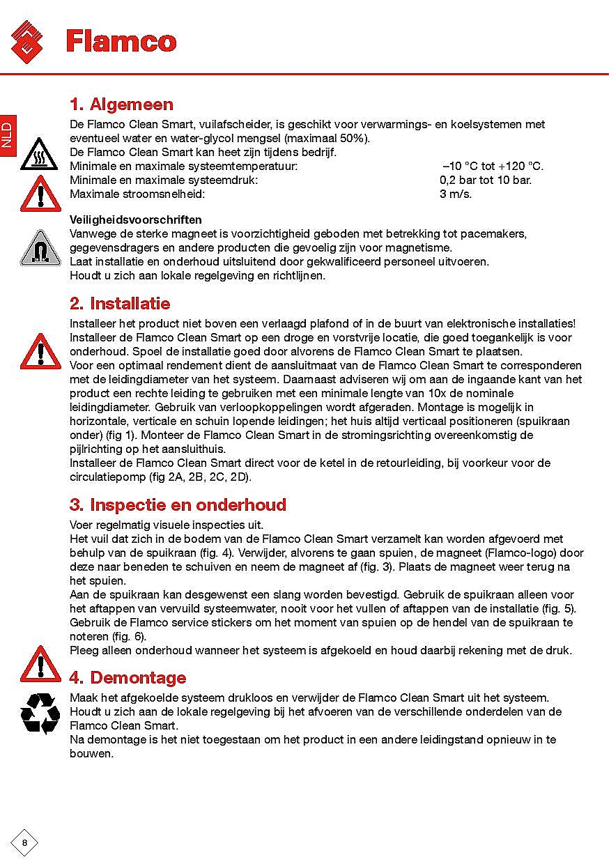 Bij de Flamco Clean Smart zijn vier neodymium supermagneten verwerkt in het logo, recht tegenover de uitstroomopening. Hierdoor worden alle ijzerhoudende vuildeeltjes direct aangetrokken en vastgehouden. Zelfs de kleinste vuildeeltjes vanaf 4 μm worden op deze wijze afgevangen.