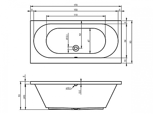 - Rechthoekig ligbad met comfortabele afmetingen.