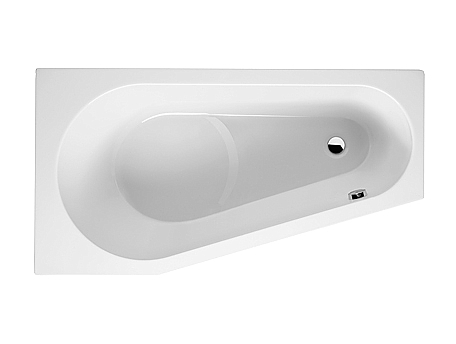 Inbouwbad, hoogglans wit acryl bad, afgeschuind model met douchevlak, afvoer bij het voeteneind. Tevens verkrijgbaar met de whirlpoolsystemen: Air, Flow, Joy of Bliss.