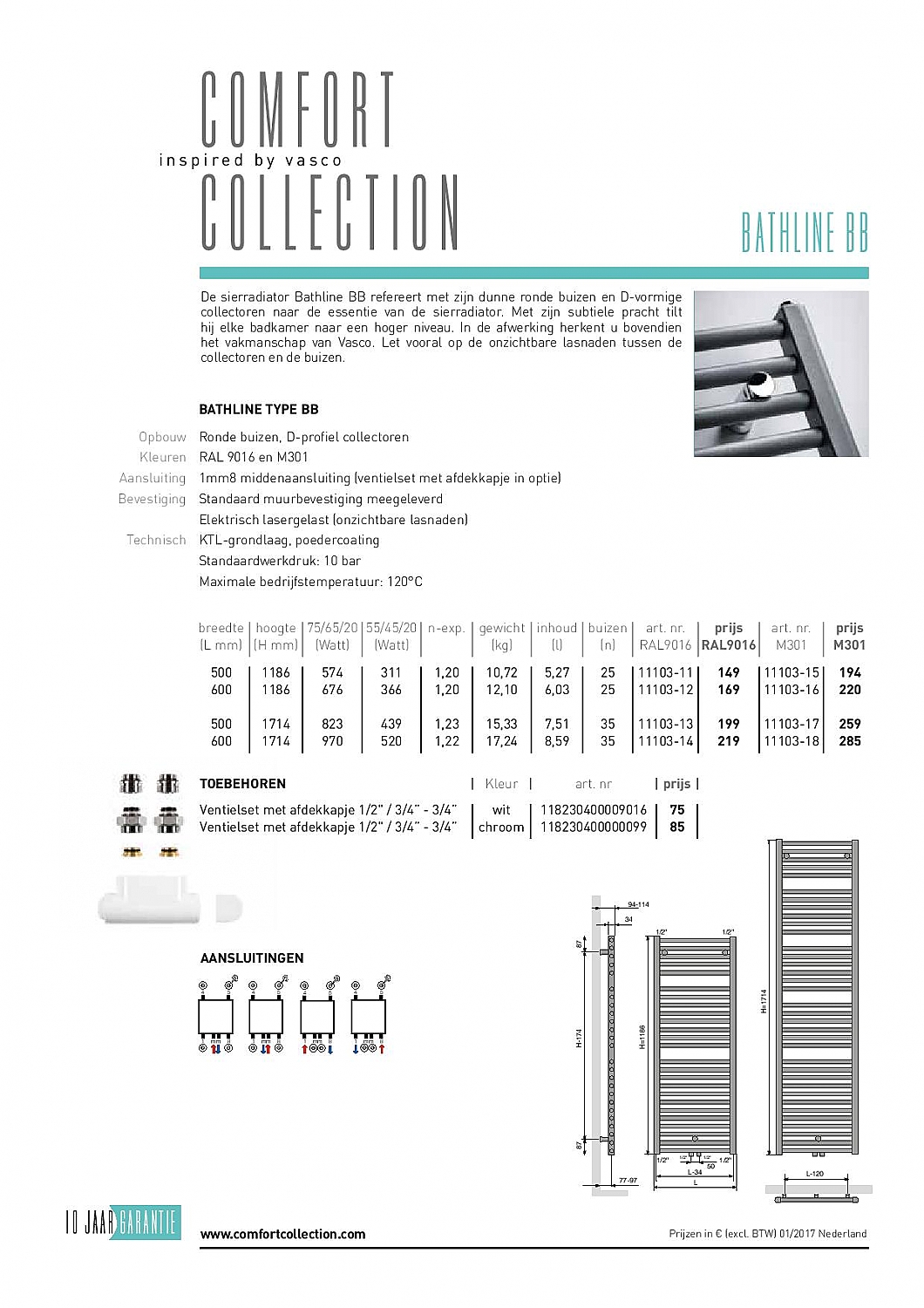 De Vasco BB Bathline designradiator verwijst met zijn ronde dunne buizen naar de essentie van de designradiator. Met zijn subtiele vormen tilt ie elke badkamer naar een hoger niveau. Qua afwerking herken je zeker het vakmanschap waar Vasco voor staat. Als je 'm uitpakt kijk maar eens naar de onzichtbare lasnaden tussen collectoren en buizen!-