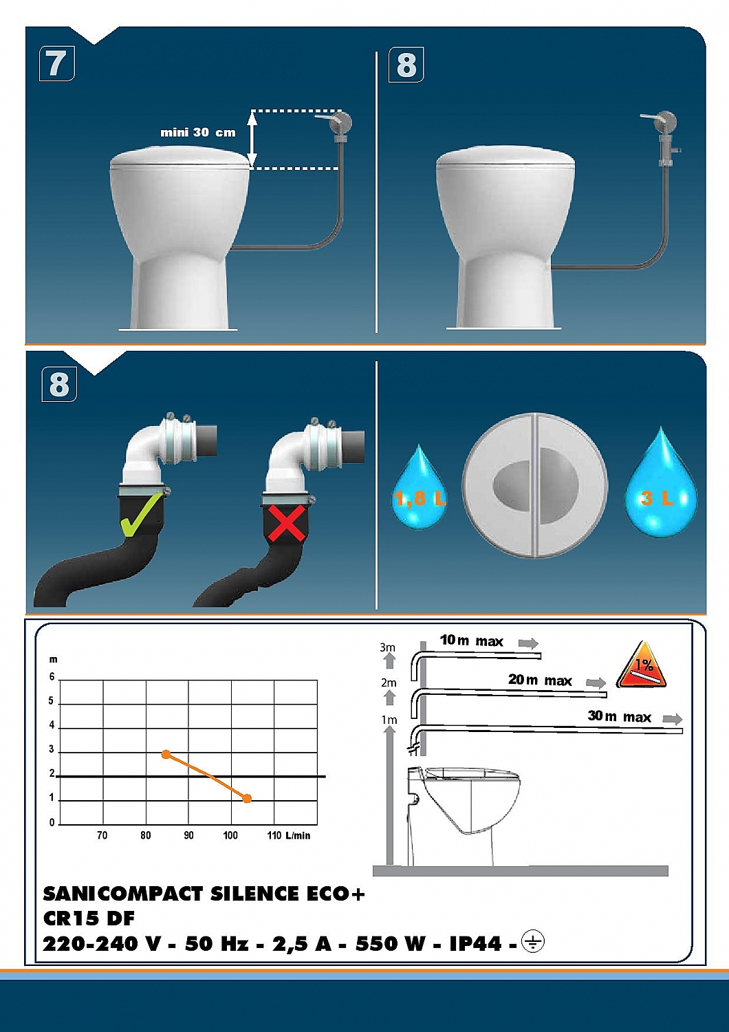 De SFA Sanibroyeur Sanicompact 43 ECO+ gaat ook spaarzaam met water om doordat er een kleine doorspoelknop voor de kleine boodschap is en een grote knop voor de grote boodschap. Hierdoor is er een verbruik van 1,8 (kleine spoelknop) / 3 liter (grote spoelknop) water per spoelbeurt (zie spoelknop aan de linkerkant op de foto).