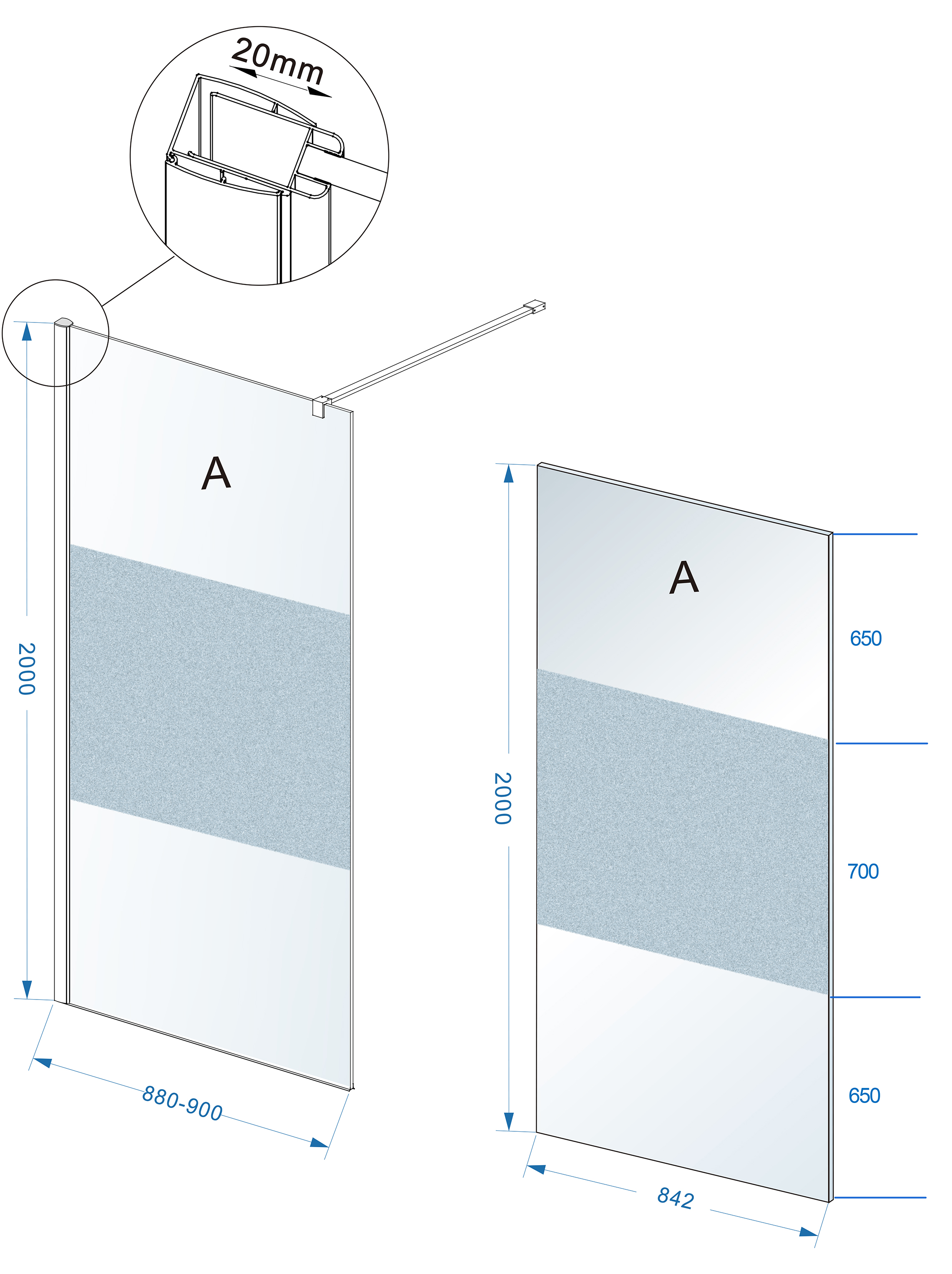 - Uitgevoerd in 10 mm gehard veiligheidsglas.
