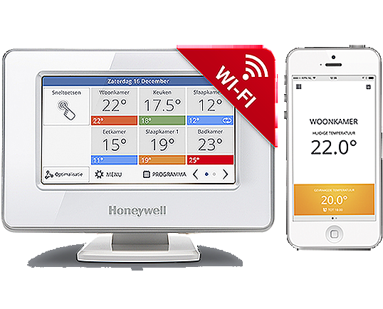 - Bediening via smartphone/tablet: U kunt de thermostaat op afstand bedienen via smartphone of tablet met de Total Connect Comfort-app.