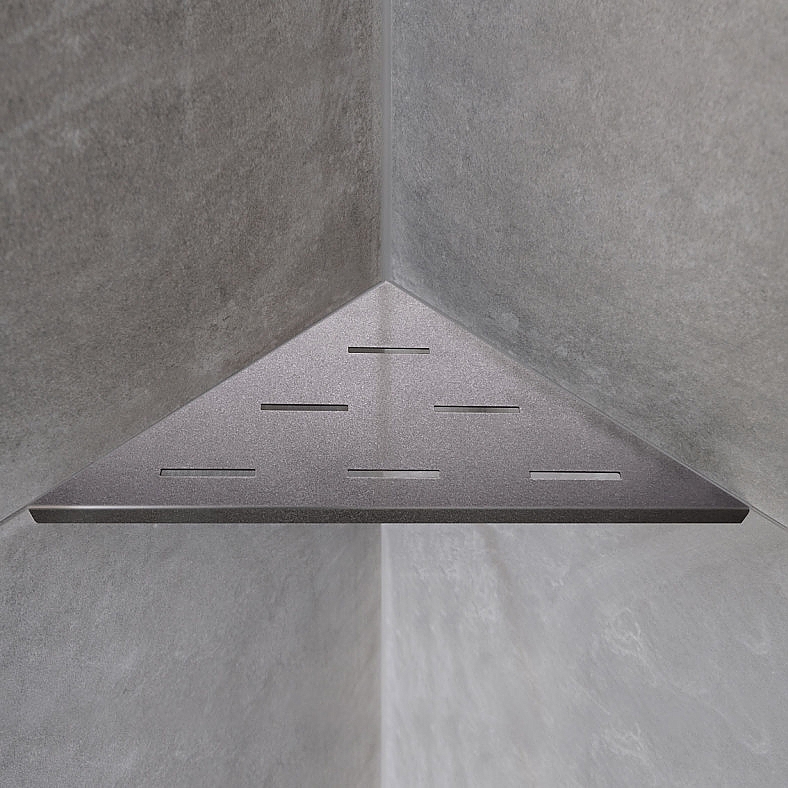 Inzet voor een hoek-planchethouder (corner shelf) van 30 cm. Met deze inzet maak je de planchet praktisch en hygiënisch: kleine items blijven stabiel liggen en je neemt de inzet er zo uit voor een snelle schoonmaak. Ideaal voor shampoos, zeep en scheerspullen in een compacte doucheruimte.