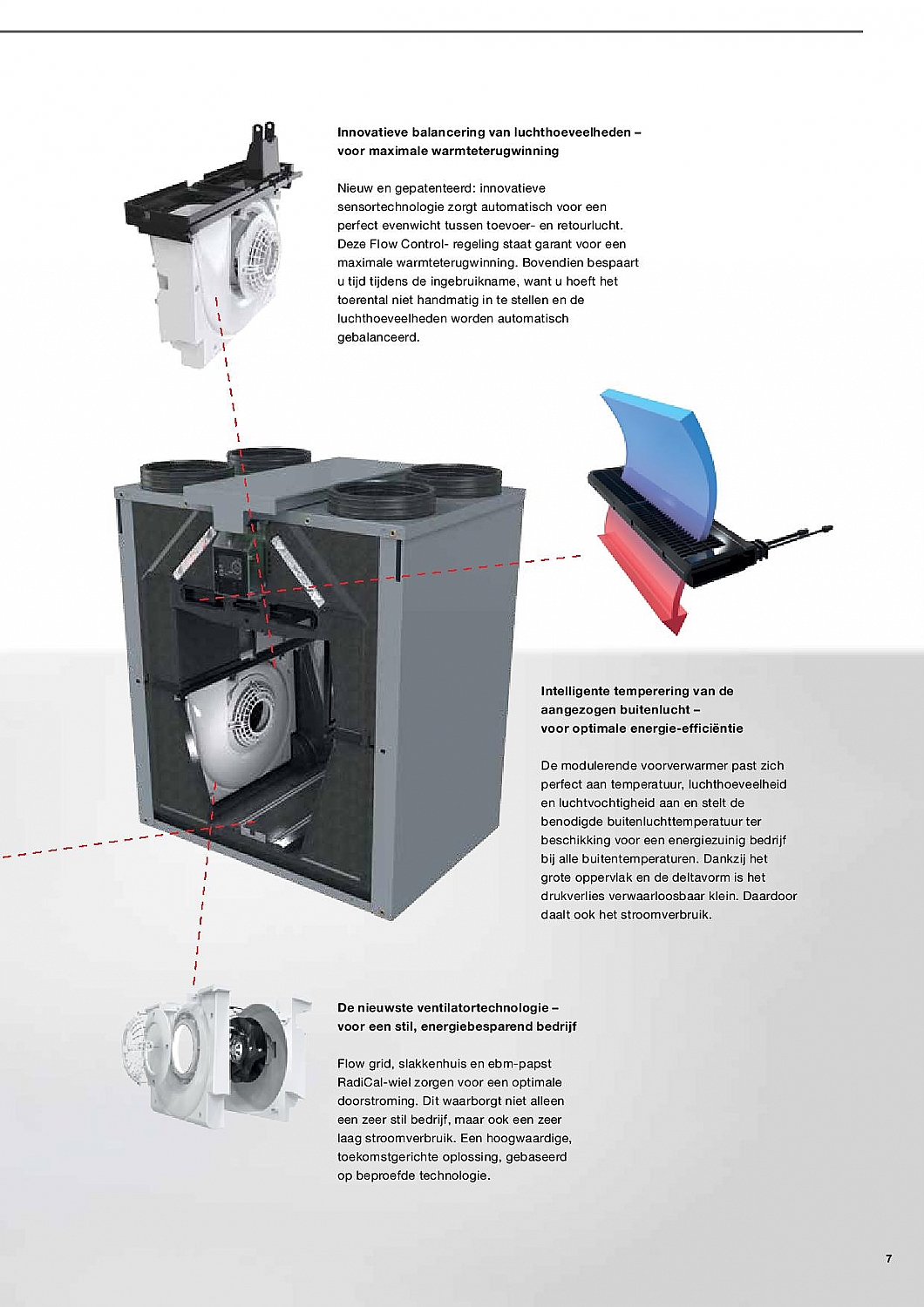 ✓ Constante luchtverversing met warmteterugwinning tot 95 %