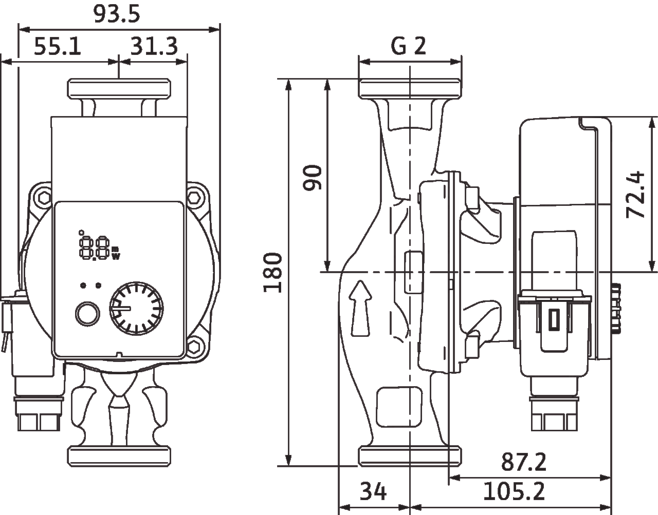 Seriematig met:Vooraf instelbare regelingstypes voor optimale aanpassing van de belasting: Verschildruk constant (Δp-c), verschildruk variabel (Δp-v), constant toerental (3 regelkarakteristieken)Geïntegreerde motorbeveiligingLED-weergave voor het instellen van het setpoint en de weergave van het lopende verbruik in wattAutomatische deblokkeerfunctieHandmatige ontluchtingsfunctie voor de ontluchting van de rotorruimteHandmatige herstart