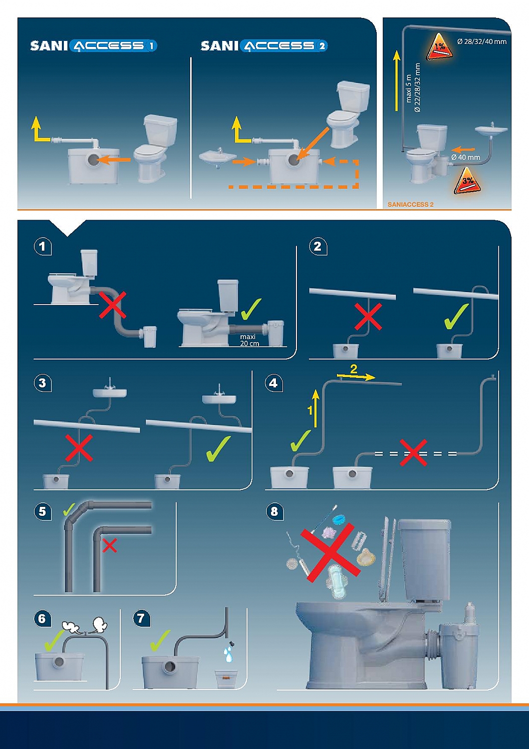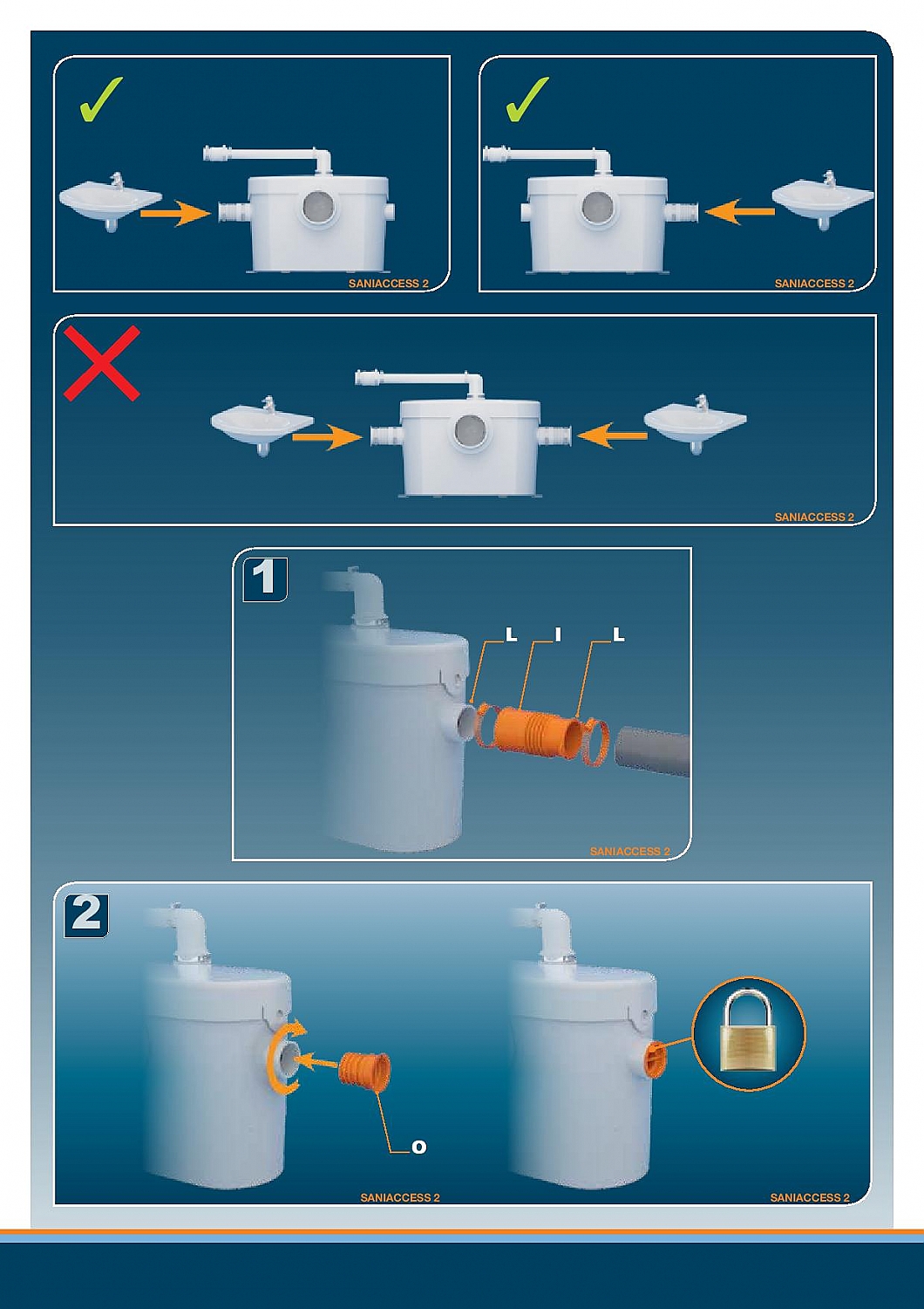 De Saniacces 2 heeft aansluitmogelijkheden voor wastafel/fontein met een zeer stille werking. Je hebt volledige toegang tot de Saniacces 2 door middel van twee afneembare deksels aan de bovenzijde. Bedrijfszekerheid is optimaal, dus ideaal voor bijvoorbeeld een bed & breakfast, kantoor, praktijk of salon aan huis.