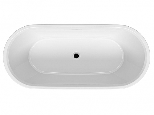 Vrijstaand, hoogglans wit acryl dubbelwandig bad, met ingebouwde overloop en pop-up. Geen whirlpoolsystemen mogelijk.