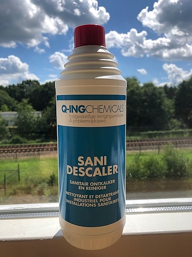 Sani Descaler van Q-ing is simpelweg de beste ontkalker en reiniger die er is voor het gehele sanitairgebied. Eenmaal gekocht en gebruikt blijft je het altijd gebruiken. Sani Descaler verwijdert meteen kalkaanslag, urinesteen en roest op een meest effectieve wijze. Het tast daarbij geen keramiek, acryl en wondergliss coating aan. Het product reinigt afvoerleidingen en vergroot de diameter van de buizen. Sani Descaler is onschadelijk voor septische putten. Na het gebruik afspoelen met water voor het beste resultaat. (Niet geschikt voor natuursteen en kalkhoudende steen). Na het gebruik afspoelen met water voor het beste resultaat